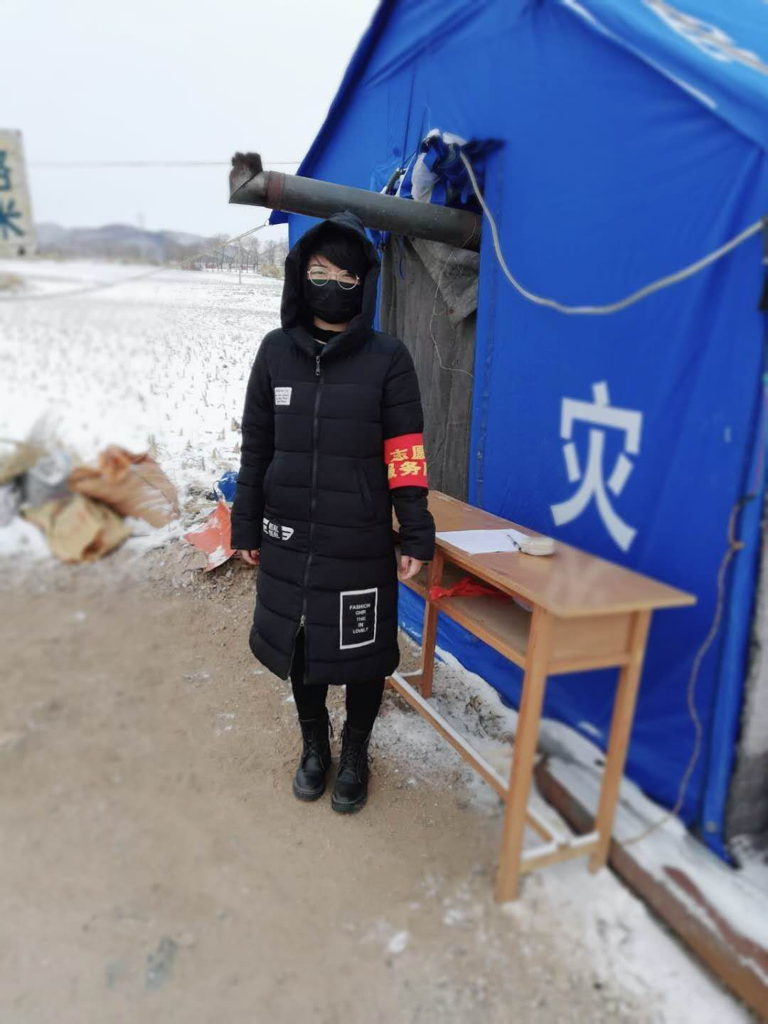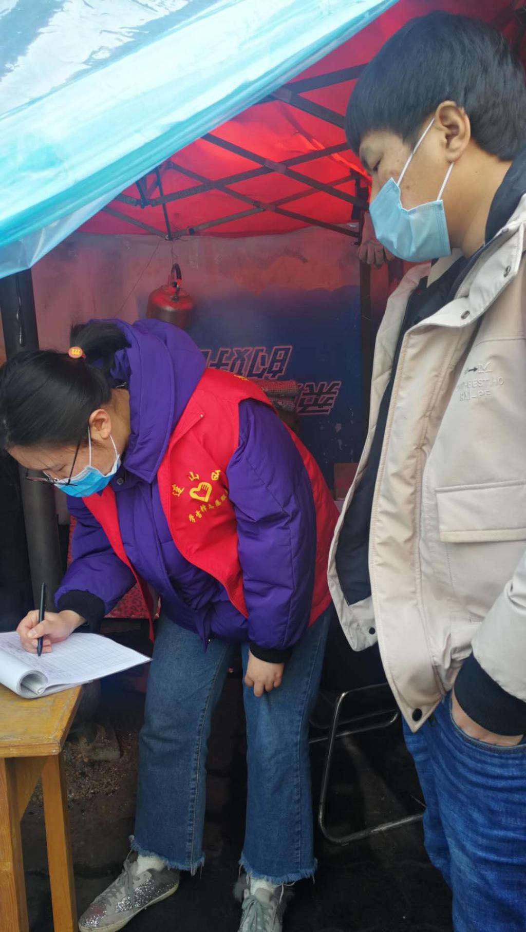 隋少婷,来自太阳成集团tyc122ccvip化学1801班,在北票市哈尔脑乡李杖子村她每天的志愿任务是检验来往居民的通行证并测量体温,做无证通行登记,配合社区工作者做好后勤保障工作,记录来往车辆,来为村民提供安全的生活环境,虽然在大多数的人们看来这是一件简单的事情,但是隋少婷同学却认真的对待每一次的工作记录并每天准时的和同事们一起站岗。身着冬装的她经常忙的汗流浃背,但是她没有因此抱怨:“习近平总书记强调:‘社区是疫情联防联控的第一线,也是外防输入、内防扩散最有效的防线。’我坚信为志愿服务流下的汗水是值得的。”