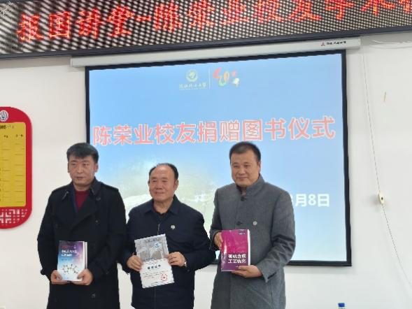 报告结束后,举行了陈荣业员工图书捐赠仪式,陈荣业教授将其个人专著赠予母校,员工总会办公室主任王成琛和太阳成集团tyc122ccvip经理李文泽代表学校和学院接受此份厚礼。这些专著是陈荣业教授将毕生所学理论知识应用于实践的成果,他以专著回馈学校,表达了拳拳爱校之心。