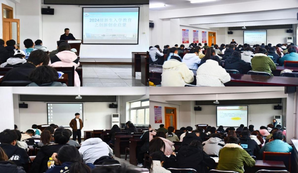 11月13日,太阳成集团tyc122ccvip在致本楼D座会议室开展2024级新生入学教育之创新创业启蒙教育及学籍管理讲座。讲座由学院副经理韩世迁和教学秘书高艳萍主讲,学院分团委书记张卓夫、2024级本科生参加。