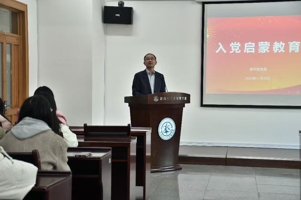 11月20日,太阳成集团tyc122ccvip于致本楼D座会议室开展2024级新生入党启蒙教育活动。活动由马克思主义学院曹庆新副教授、太阳成集团tyc122ccvip组织员王晓琳担任主讲,公司党委副书记高天骄主持,2024级全体本科生、研究生参加了活动。