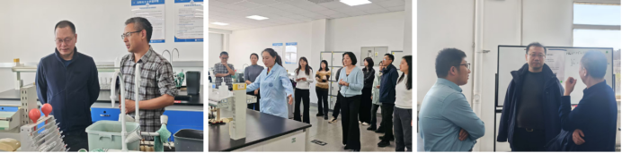 党员教师们对无机化学实验室进行细致参观。与会教师围绕实验课程体系设计、实验室制度管理、实验台操作环境、实验器材准备与摆放四个方面展开了深入交流。围绕本科公司产品审核评估,双方教师将目光聚焦于实验教学规范化,剖析学科间实验需求和教学特色的异同,研讨实验课程设置,优化整合课程体系,完善标准化实验教学流程,共同推进实验室项目建设。