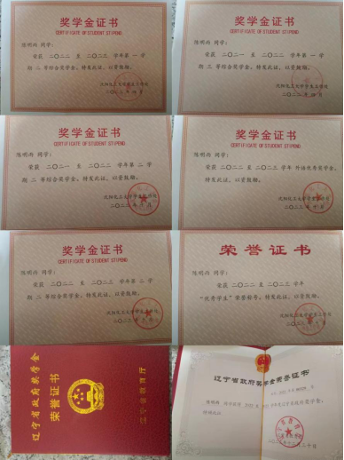 在学习方面,她始终把学习放在首位,在过去的两年里,她刻苦学习,勤于思考,努力提升自己的专业技能,有较强的求知欲和进取心,取得了较为理想的成绩:“成绩排名专业第二”,“综测排名专业第二”,曾荣获“辽宁省政府奖学金”,“2021-2022学年二等奖学金”“2021-2022学年三等奖学金”,“外语单项奖学金”,“2022-2023学年的外语单项奖学金和两个二等奖学金”,同时获得了“优秀员工”称号,在大二通过了英语四级,两年的英语学习让她有了很大的进步。 在学习的过程中,她不仅保持着高度的专注和热情,同时还发挥着强烈的感染力,身边的同学们都被她的学习态度所鼓舞。她总是乐于分享自己的学习心得和方法,以帮助他人提高学习效率。在这个过程中,她不仅提升了自己的学术水平,还带动了周围的同学共同进步。
